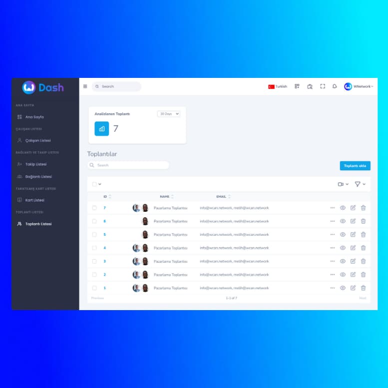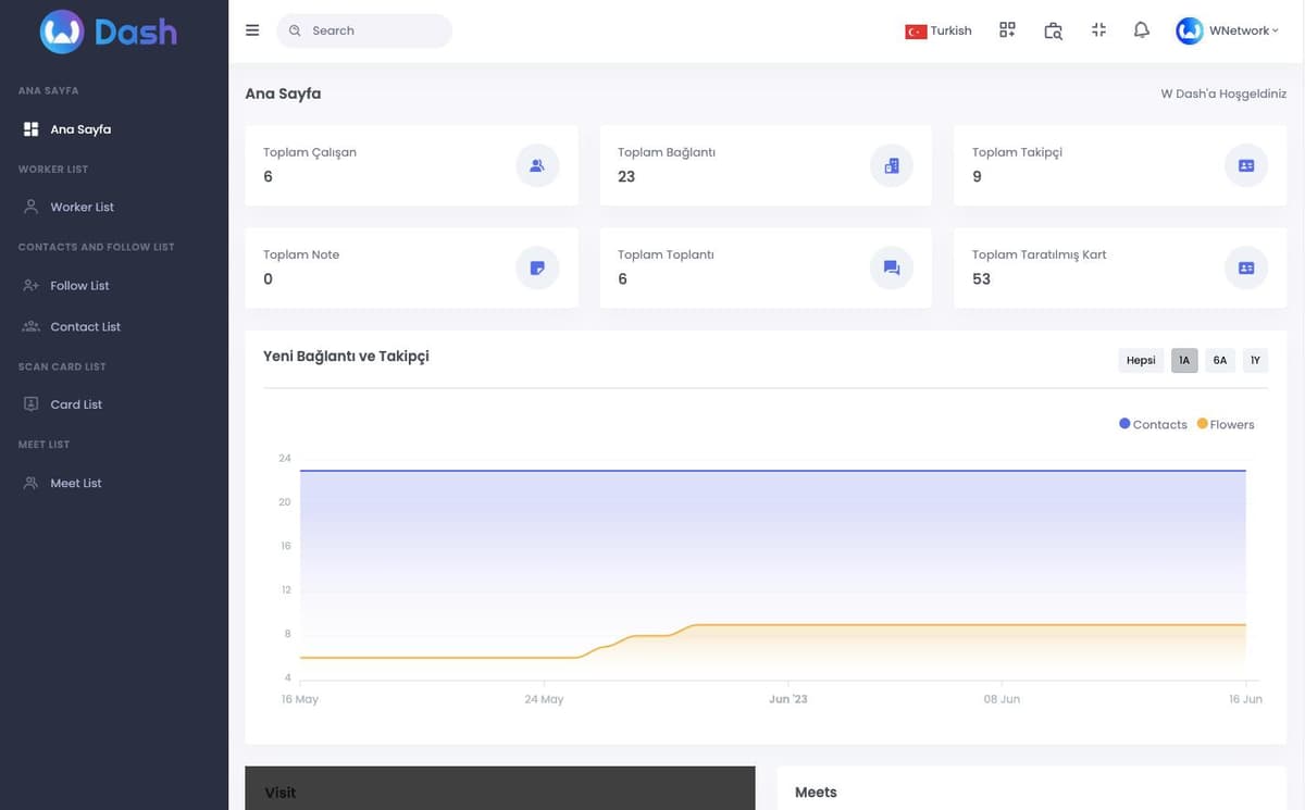 With WDash, companies can see and analyze everything from the number of network development of their employees to the dates of meeting organizing, what they talked about in the meeting and the efficiency of the meeting. Multiply your network performance and increase your business success with WDash.